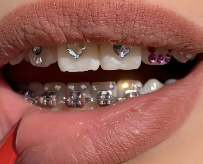 Gắn sticker, hạt trang trí lên mắc cài (xu hướng underground): Mặc dù chưa được các nha sĩ khuyến khích vì yếu tố an toàn, nhưng vẫn có một bộ phận Gen Z tìm cách “custom” bộ niềng của mình bằng cách dán sticker nhỏ, hoặc thậm chí đính hạt đá vào mắc cài.